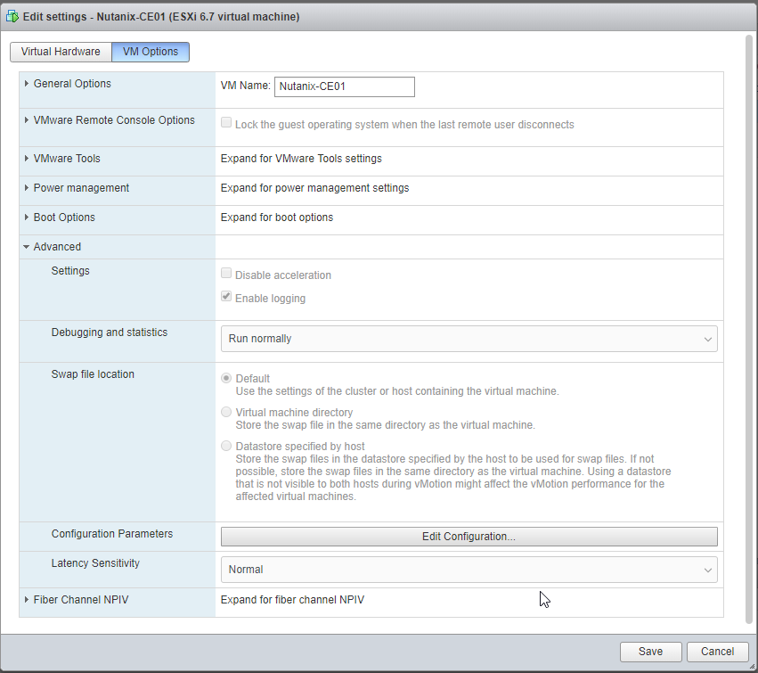 | # Disk DescriptorFile version=1 encoding=”UTF-8″ CID=a6fec276 parentCID=ffffffff isNativeSnapshot=”no” createType=”vmfs” # Extent description RW 14540800 VMFS “Nutanix-flat.vmdk” # The Disk Data Base #DDB ddb.adapterType = “lsilogic” ddb.geometry.cylinders = “905” ddb.geometry.heads = “255” ddb.geometry.sectors = “63” ddb.longContentID = “7cd3219978337481ae6b4edaa6fec276” ddb.uuid = “60 00 C2 94 64 30 98 a0-5d 85 e3 5b e8 b7 c5 e5” ddb.virtualHWVersion = “11” |