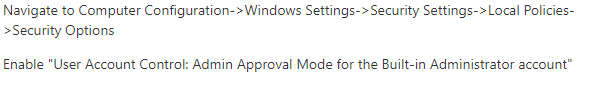 Now the best thing about this, I am logged on as the Domain Admin account, its the only account on the box. I summoned all my Google-FU I could and found an article close to my issue. The issue in the article detailed out an domain upgrade and OS upgrade from 2016 to 2019, not exactly what I was doing but same issue. In the post you have to go in and edit one of the UAC settings in a GPO.