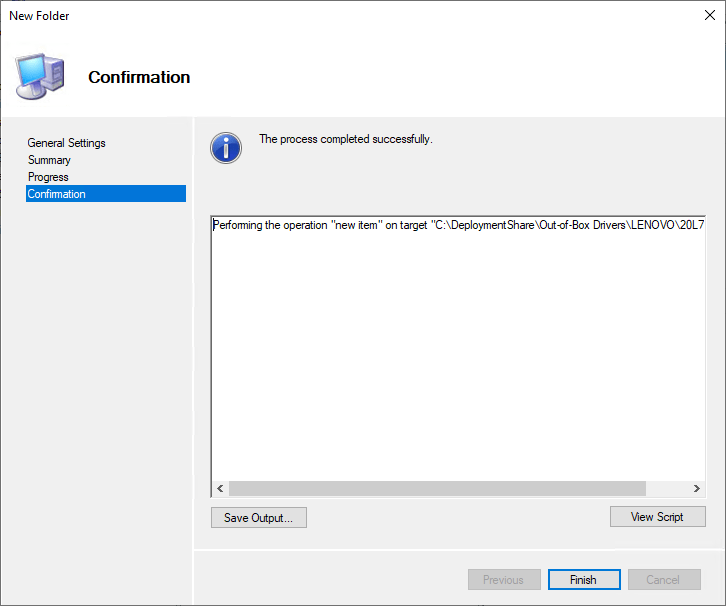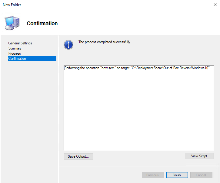 Now that we have a machine make and model lets make a folder structure based on the above command. Right click on Out-of-Box Drivers and click on New Folder