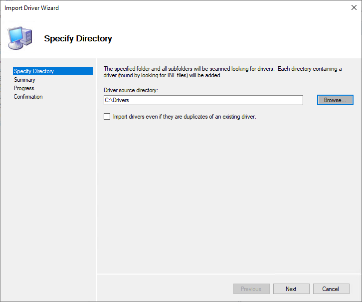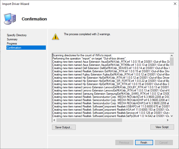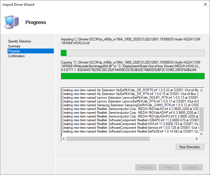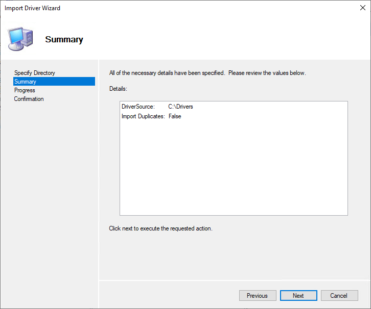 It will start the process of importing Drivers. This could take sometime depending on the amount of drivers to be imported.