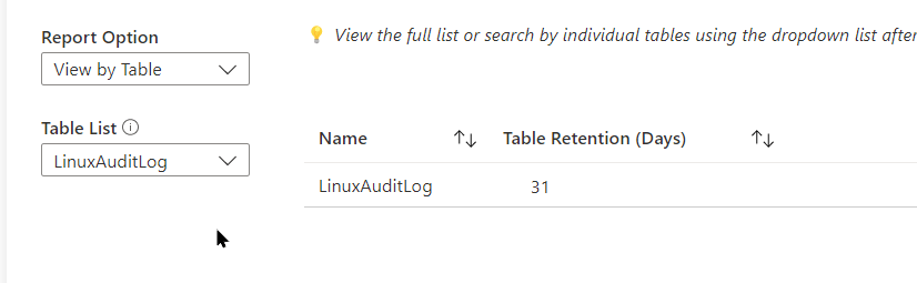 You will notice that you can see the global retention for the Log Analytics Workspace. You will need to select which LA workspace you want to work with.