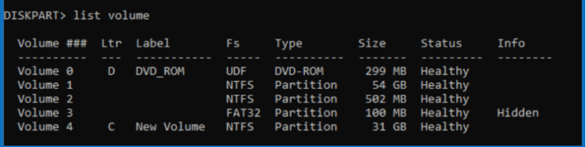 Example of external drive with D being the Drive letter(Which you would have gotten from the List Volume Command in Diskpart)