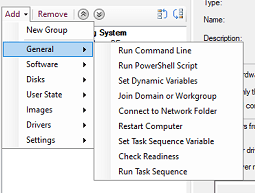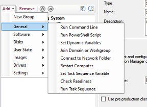Now we need to add another step to the task sequence. This step is Set Task Sequence Variable. Its important that its added correctly so click on the section that says Apply Device Drivers, click on Add. Reason for doing this, it will put the step right after where we want it.