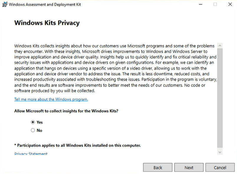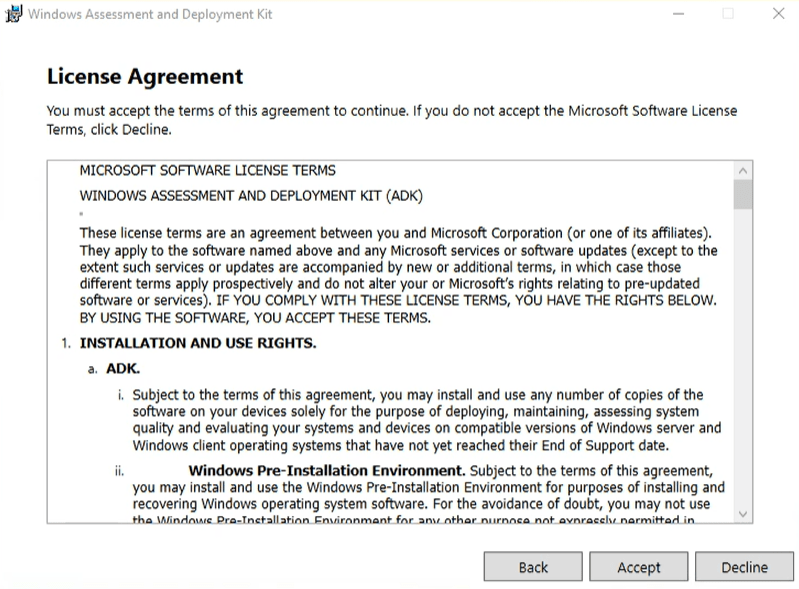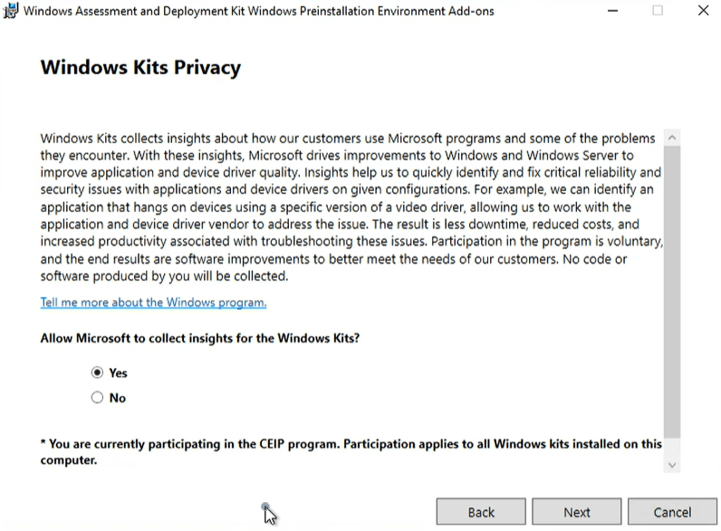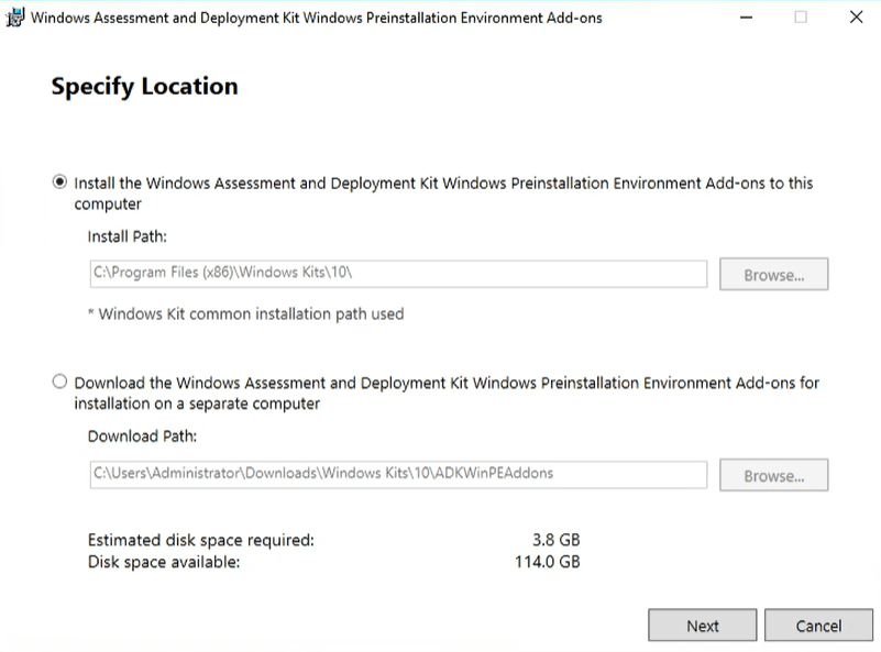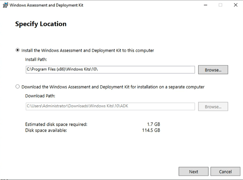 launch the ADK download first You have 2 options, I typically will do option one the default. I have used the other if I were building multiple WDS servers and did not want to wait on download but with modern speeds, it does not save that much time. Click Next.