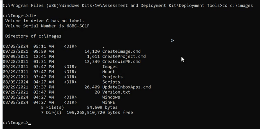 Once you see a success, then go to that c:\images\mount directory