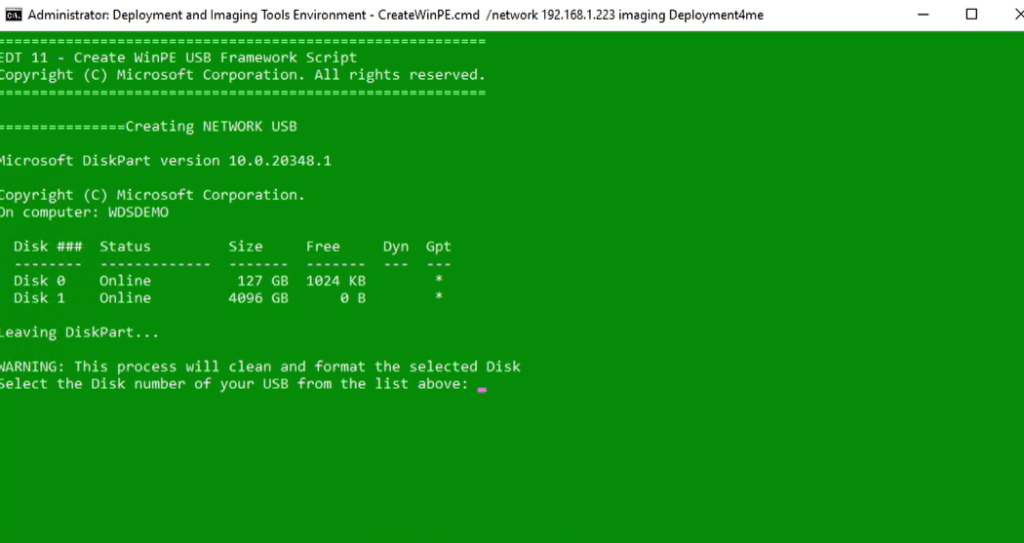 Run the CreateWinPE.cmd with the following switches for network