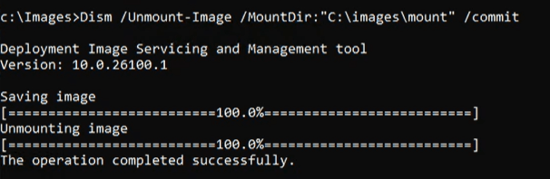 Dism /Unmount-Image /MountDir:”C:\images\mount” /commit