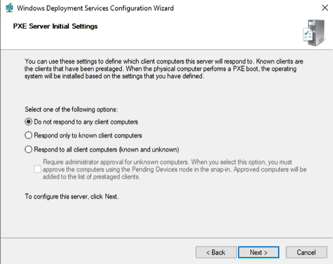 This screen you can go back and configure this again once its up , but for the most part I usually click on the 3rd option of Respond to all clients. Click Next