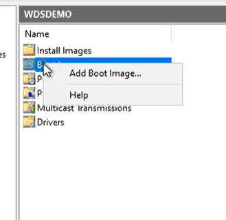 Right click on the folder called boot images. and Click on Add Boot Image