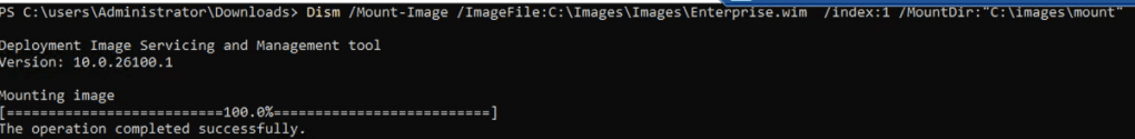 Dism /Mount-Image /ImageFile:c:\images\images\enterprise.wim /index:1 /MountDir:”C:\images\mount”