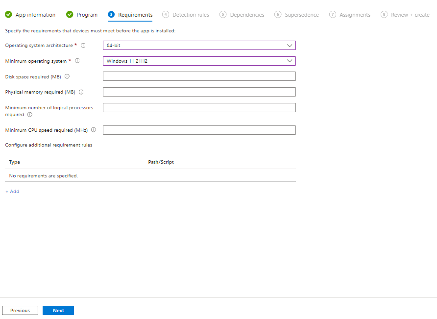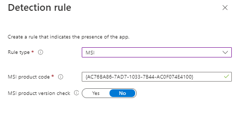 Detection rules are next, again another nice feature of MSI it makes this much easier, click on the down arrow and select “Manually configure detection rules”